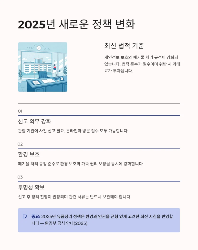 2025년 유품정리 정책은 환경과 인권을 균형 있게 고려한 최신 지침을 반영합니다 — 환경부 공식 안내(2025)